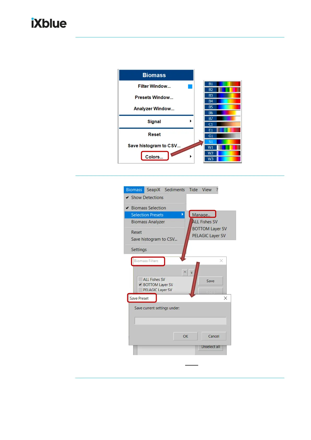 Right-clicking opens a contextual menu where you can set different parameters (filter,