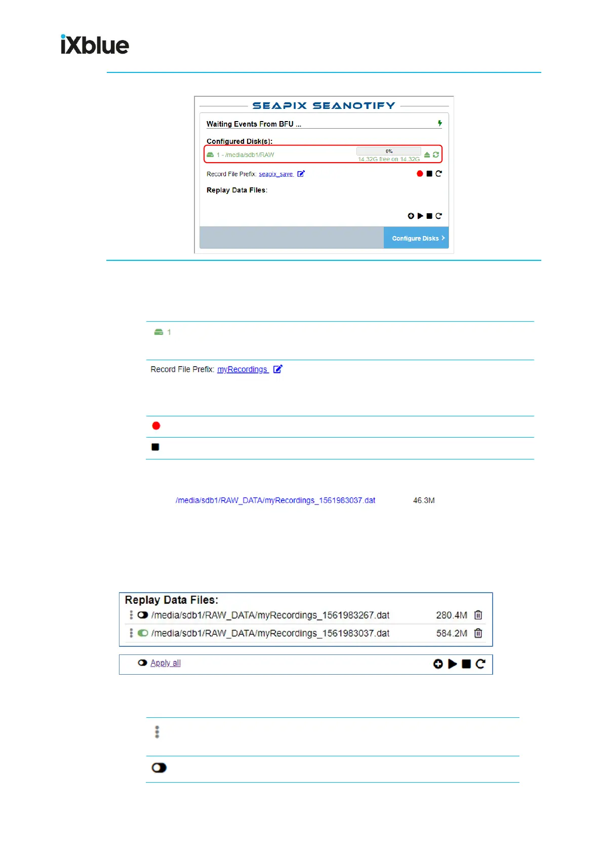 10. The main page now shows up: your disk is ready to record SeapiX data