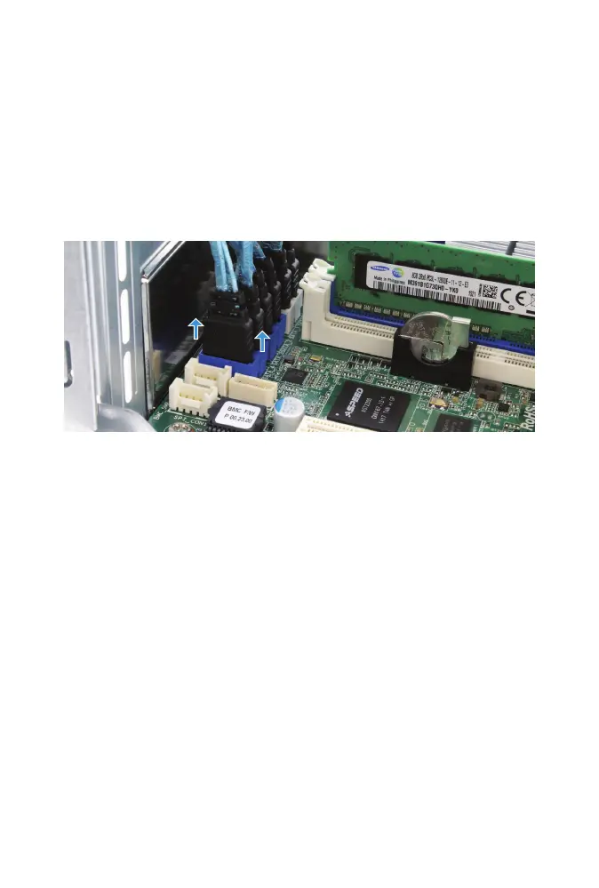 Remove the four SATA cables connected to the blue SATA connectors, and