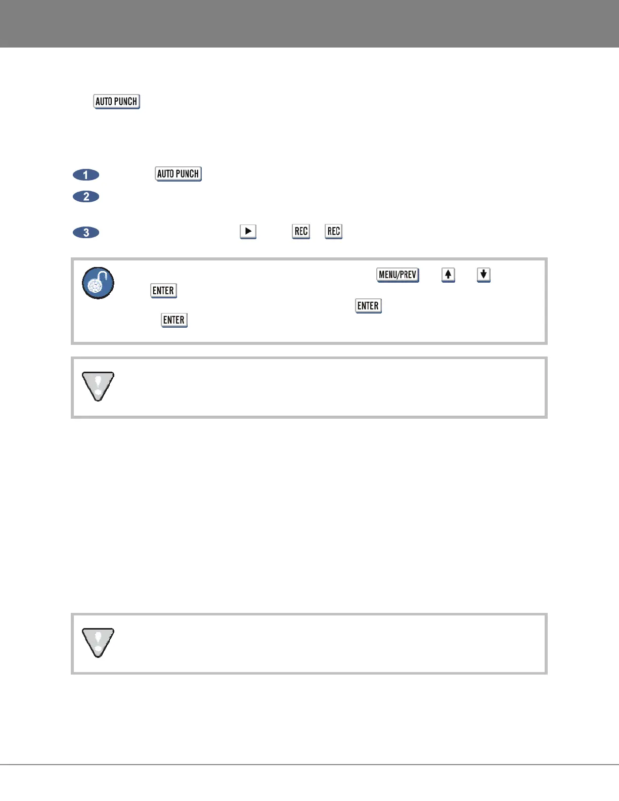 the key to go to the MAIN MENU / PREFERENCES MENU / RECORD PREFS