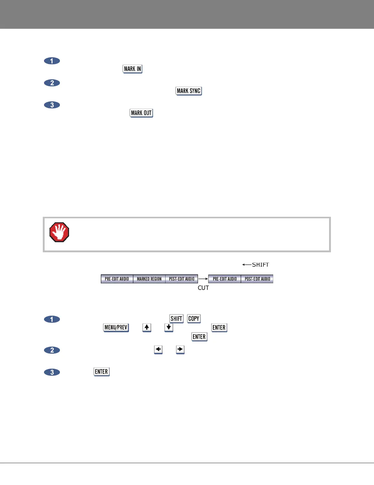 After marking a time region, press the + (CUT) key on the Session Controller or the KC-