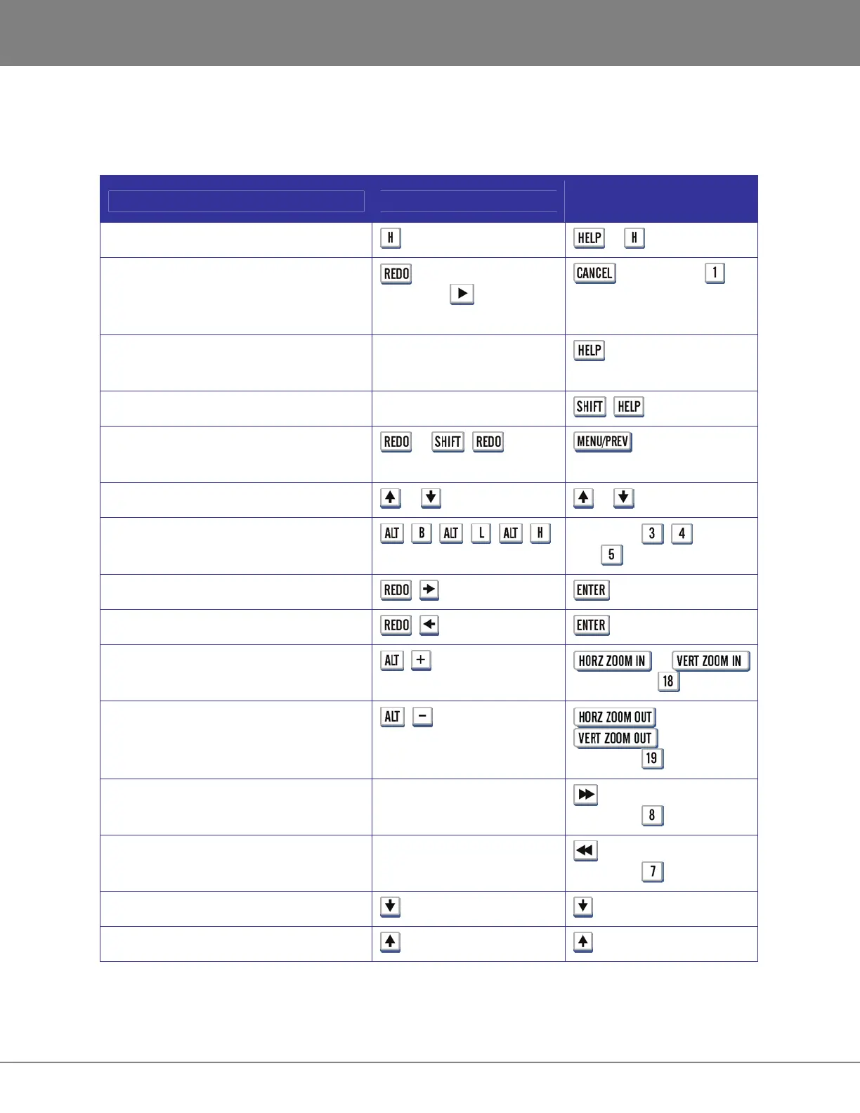 The following table shows the keystrokes for controlling and navigating the RADAR PDF viewer.