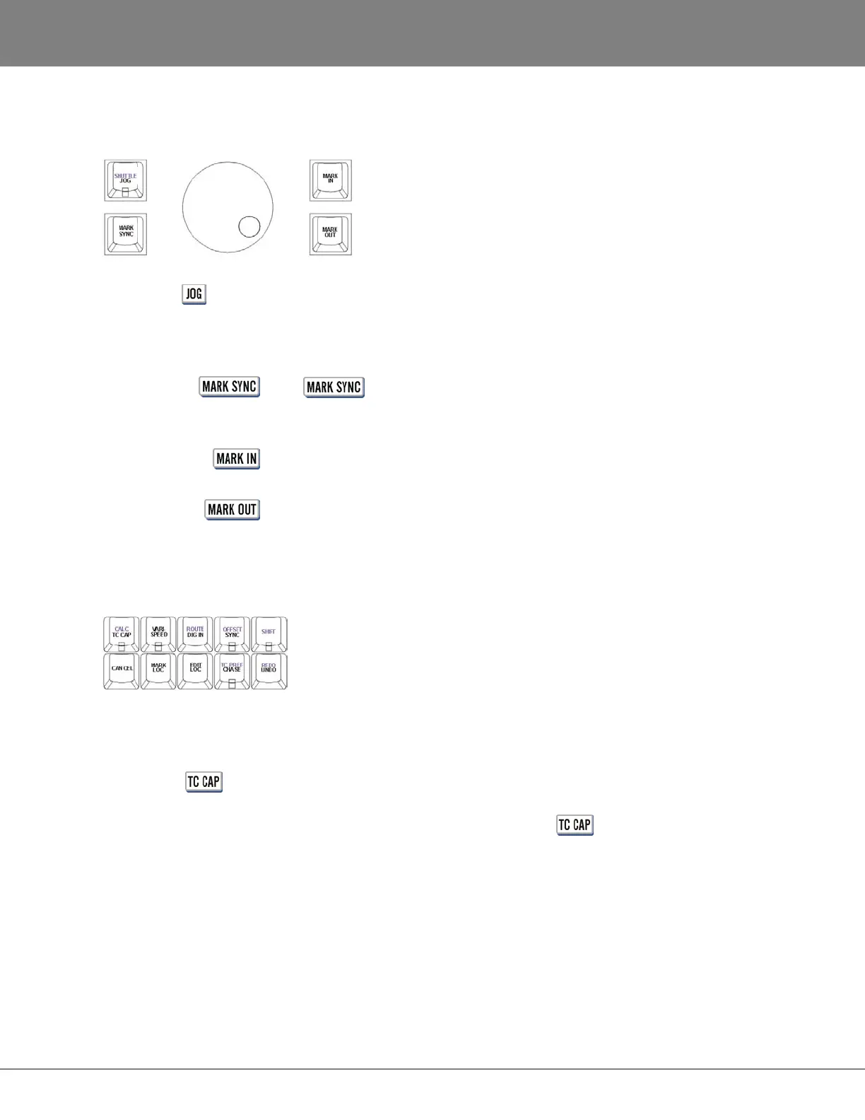 JOG, SHUTTLE, MARK IN/OUT KEYS