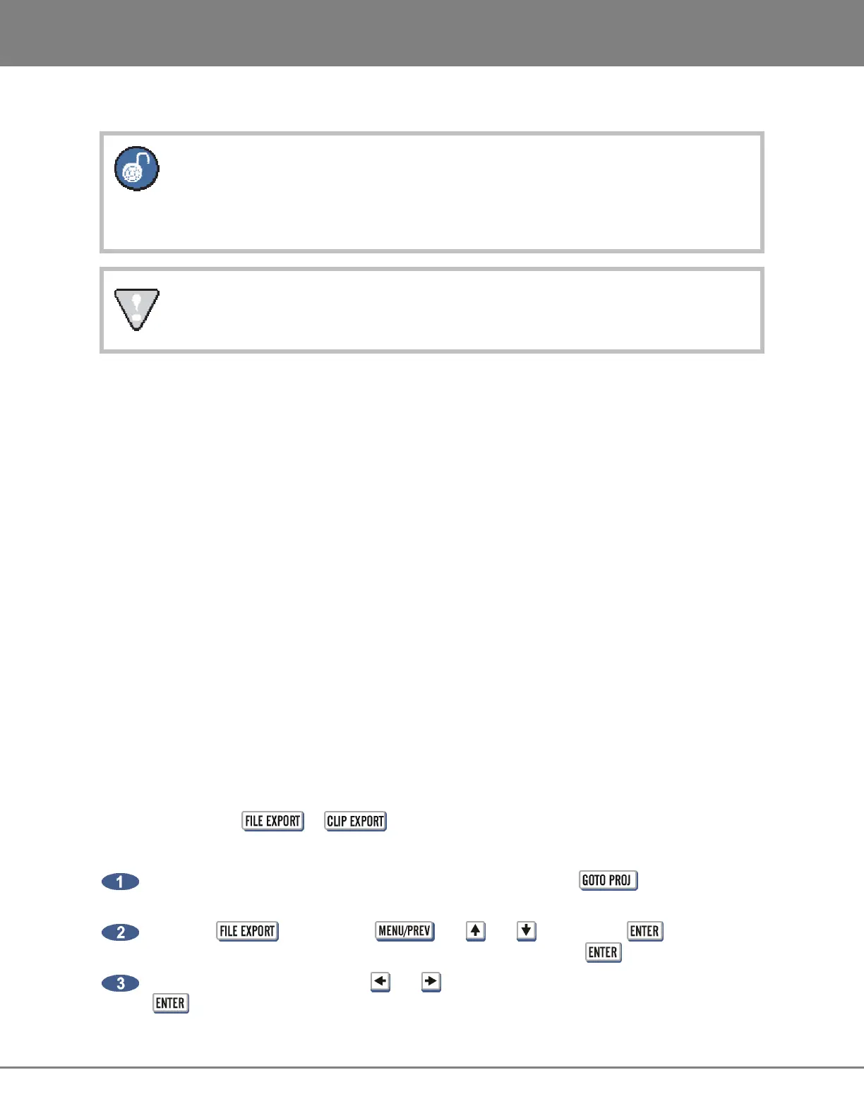 MAIN MENU / FILE MENU / EXPORT selection and press the key.