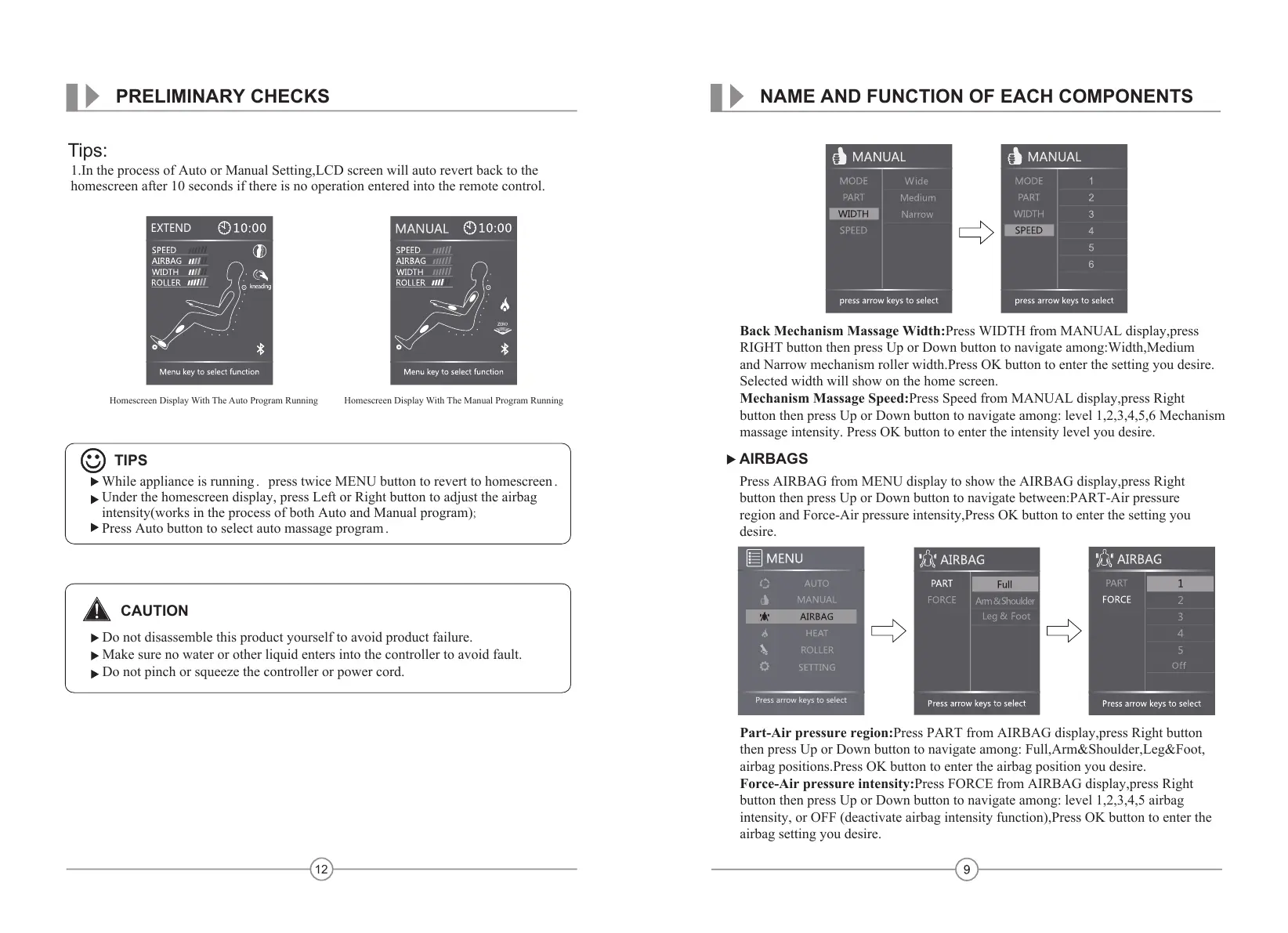 Back Mechanism Massage Width:Press WIDTH from MANUAL display,press