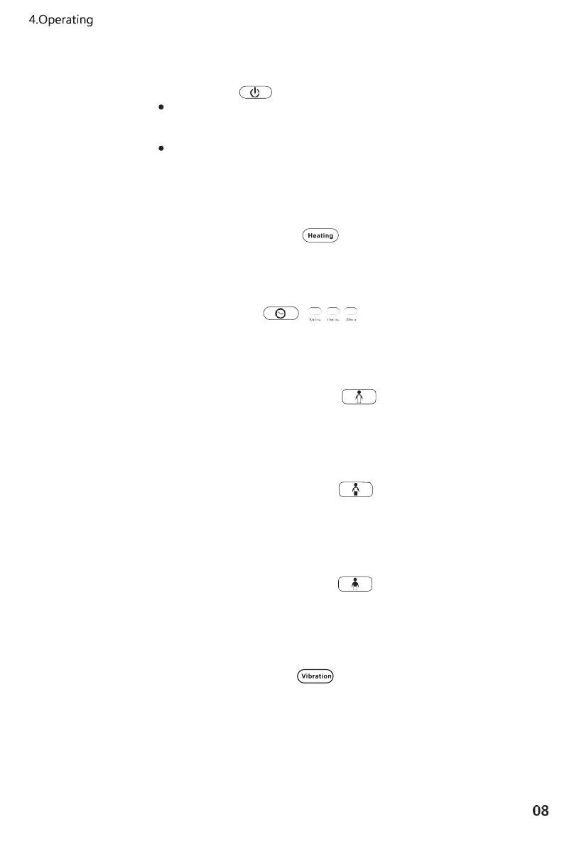 Press the timer button,to select a 10-, 15-, or 20-minute massage.
