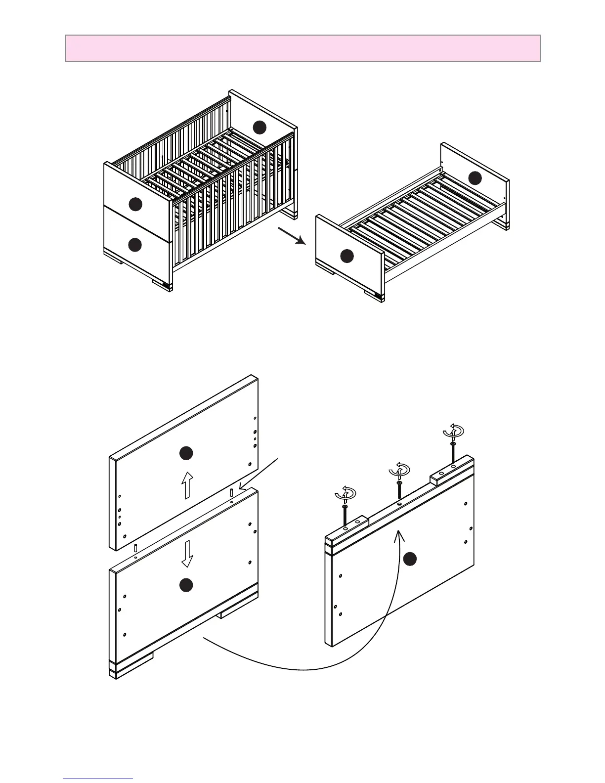 Separate panel 1a from 1b. Then using the allen key provided, remove the 3 bolts from the