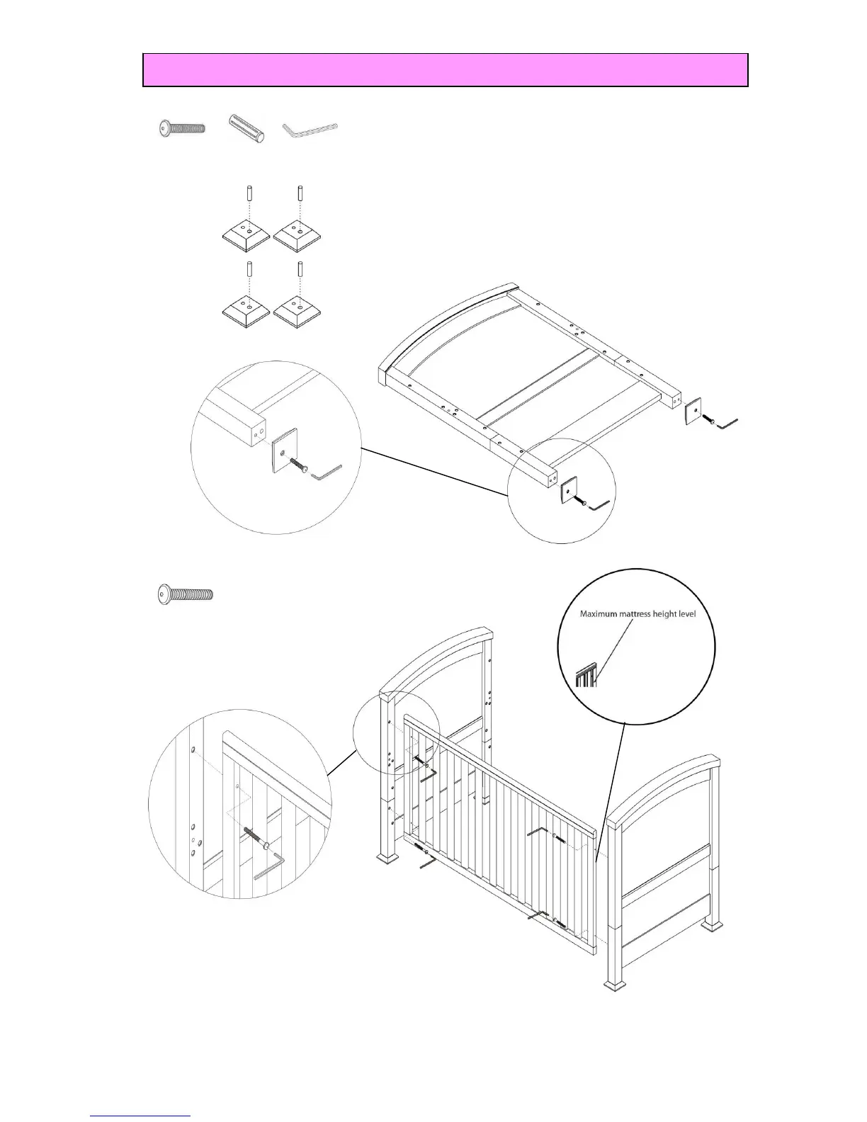IZZIWOTNOT TRANQUILITY - Assembly; Attaching dowels to feet and securing feet to bed ends.; Attaching a side rail to bed ends.