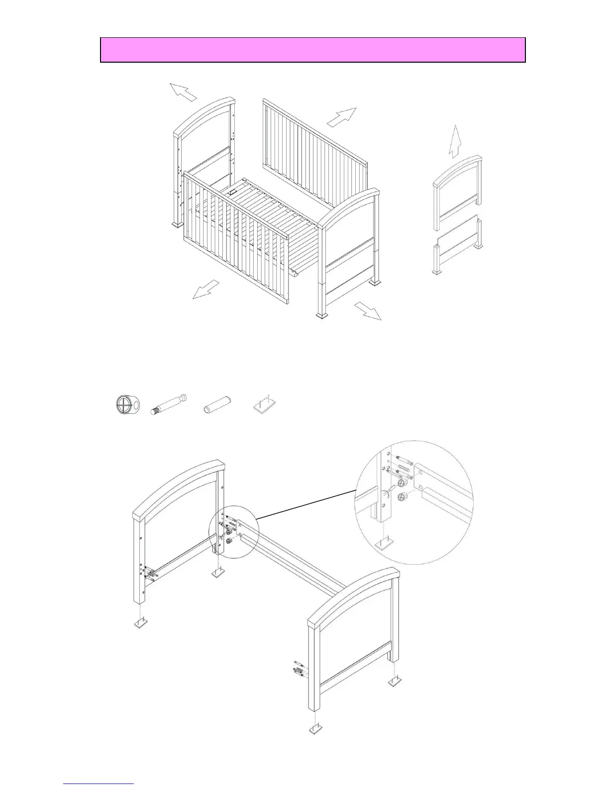 IZZIWOTNOT TRANQUILITY - Converting the cot to a bed.; Securing aprons to bed ends.