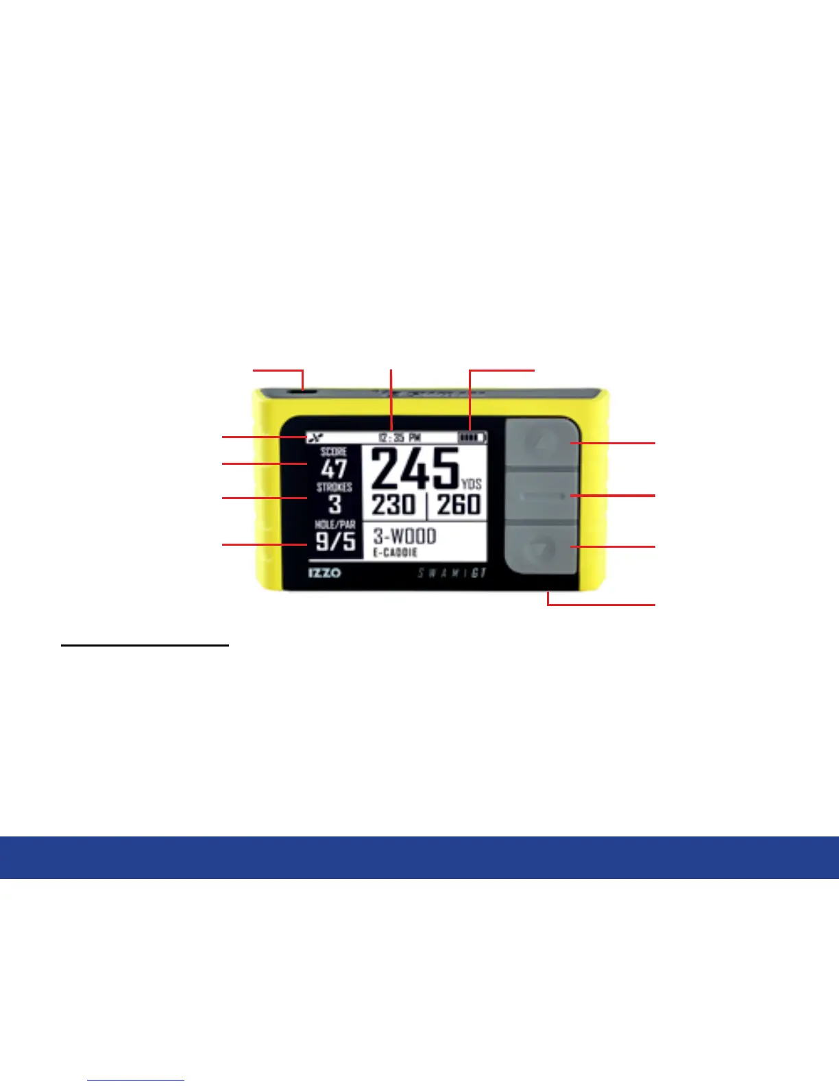 Press to toggle between distances to Green or Hazards in Play Mode.