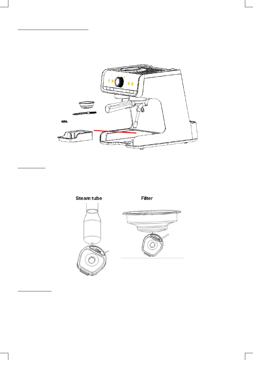 Use the cleaning pin (17) for the steam tube and for the single and double dose filters. The largest