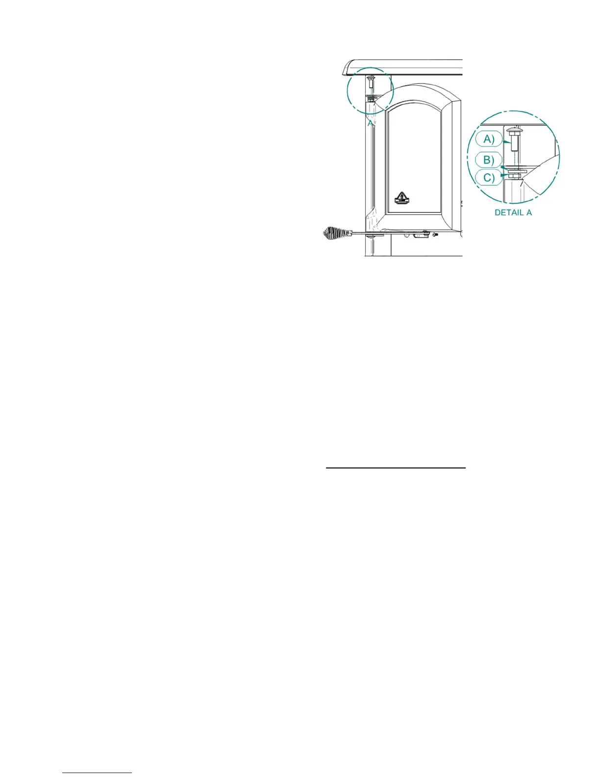 2) Screw back the top hinge bolt assembly (A, B, C)