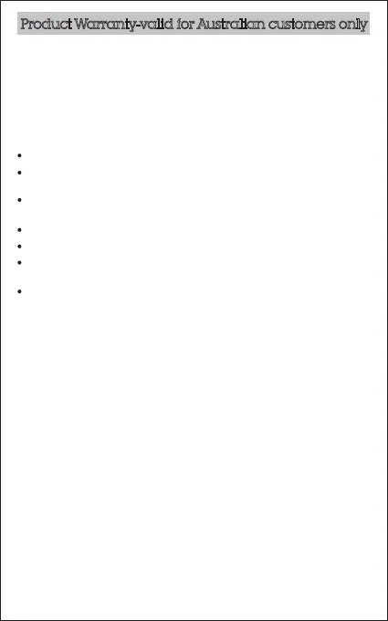 Product Warranty-valid for Australian customers only