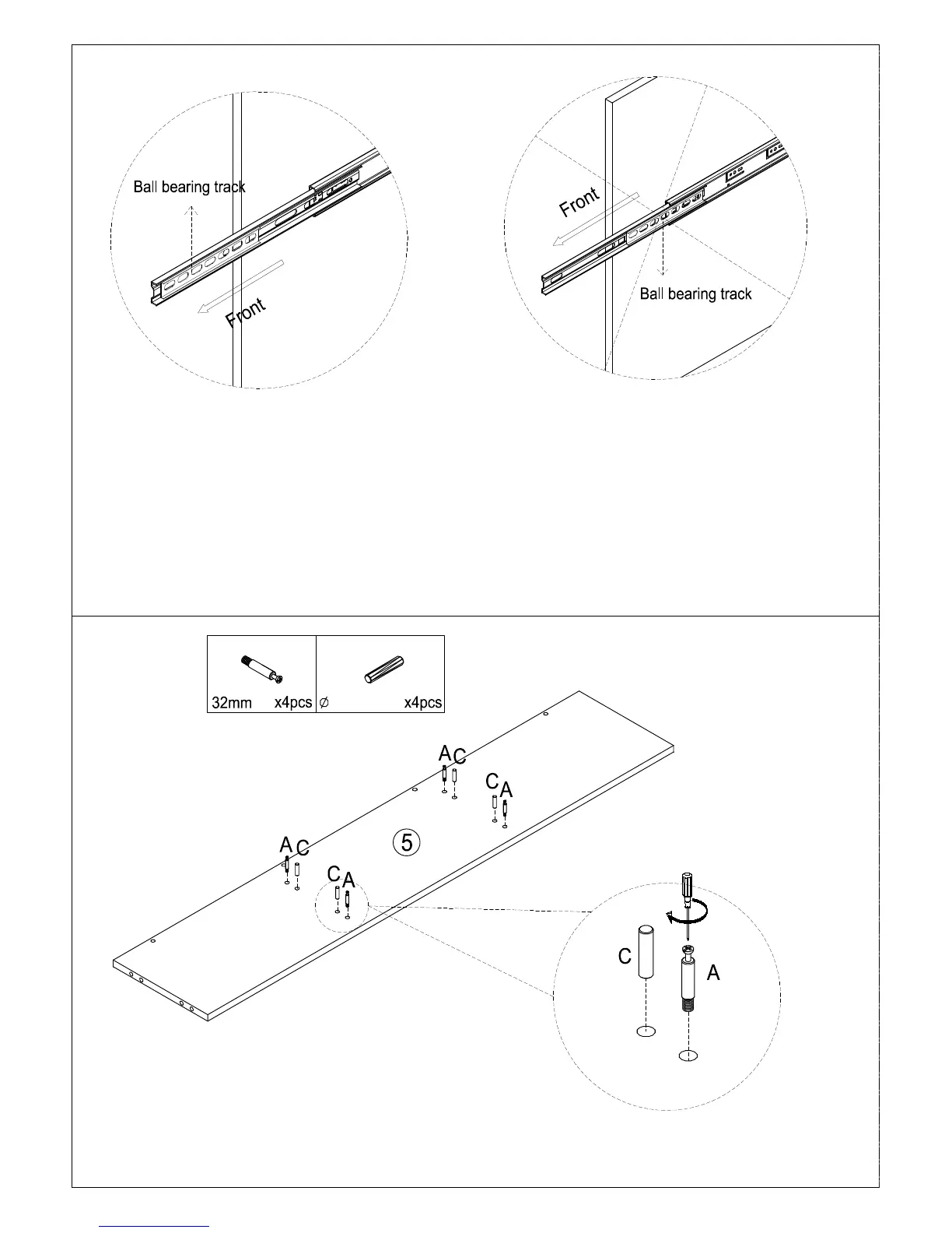 To insert drawer, fully extend both ball bearing
