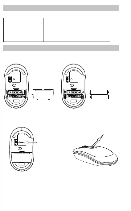 3. Turn the mouse on, the blue light on the right of scroll wheel will flash