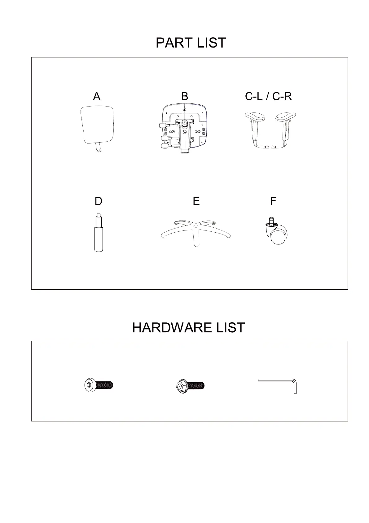J.Burrows JBPHDHBFBK - Product and Hardware Lists; Part List; Hardware List