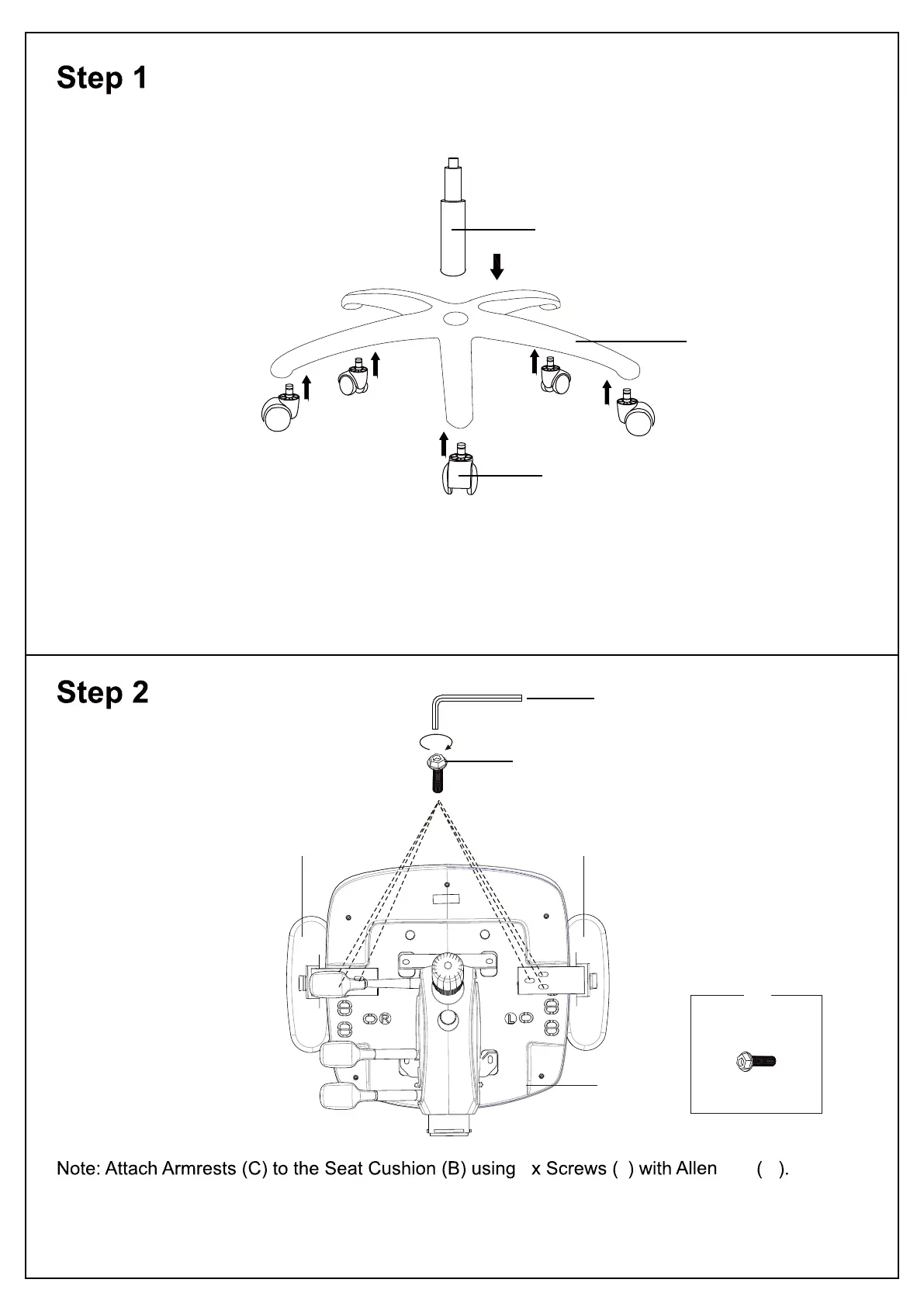 J.Burrows JBPHDHBFBK - Assembly Step 1: Base Assembly; Assembly Step 2: Armrest Attachment
