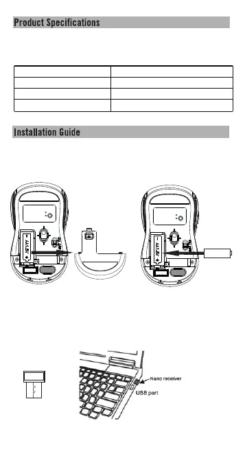 2. Insert the USB nano receiver (stored inside the mouse) into