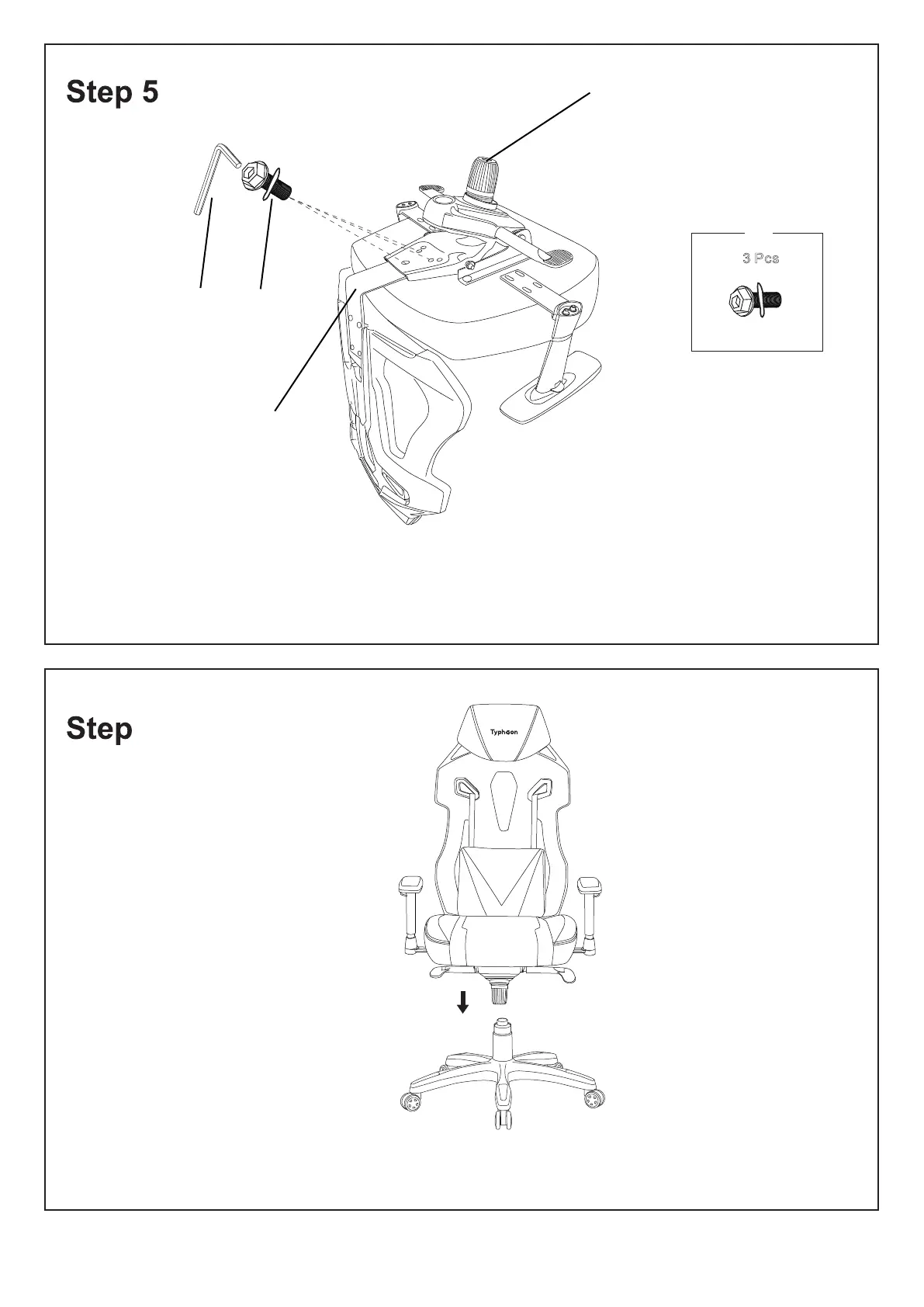 Note: Place assembled seat on the Gas Lift (E). Push down firmly until