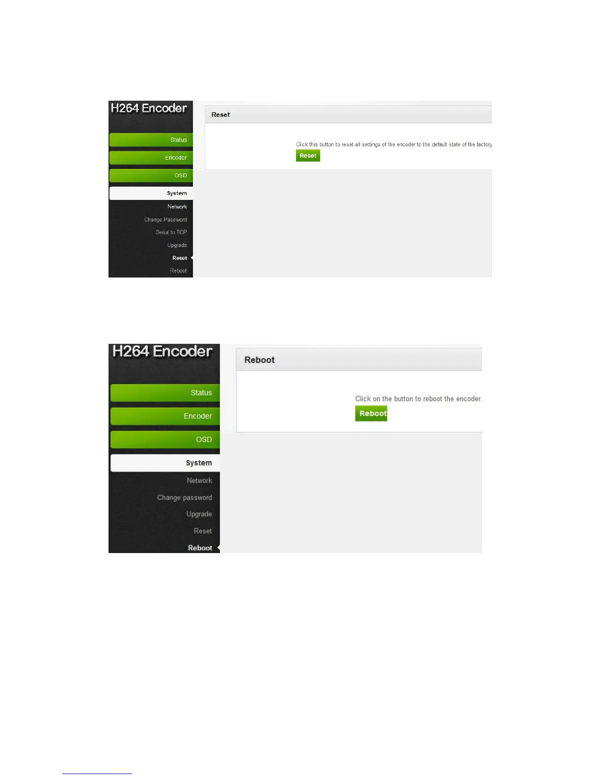 System Reboot Reboot (please refresh the web page after 1 minute)