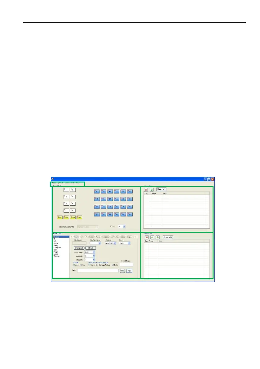 The main window of JTD-Control has five parts: main menu, panel (button) setting,