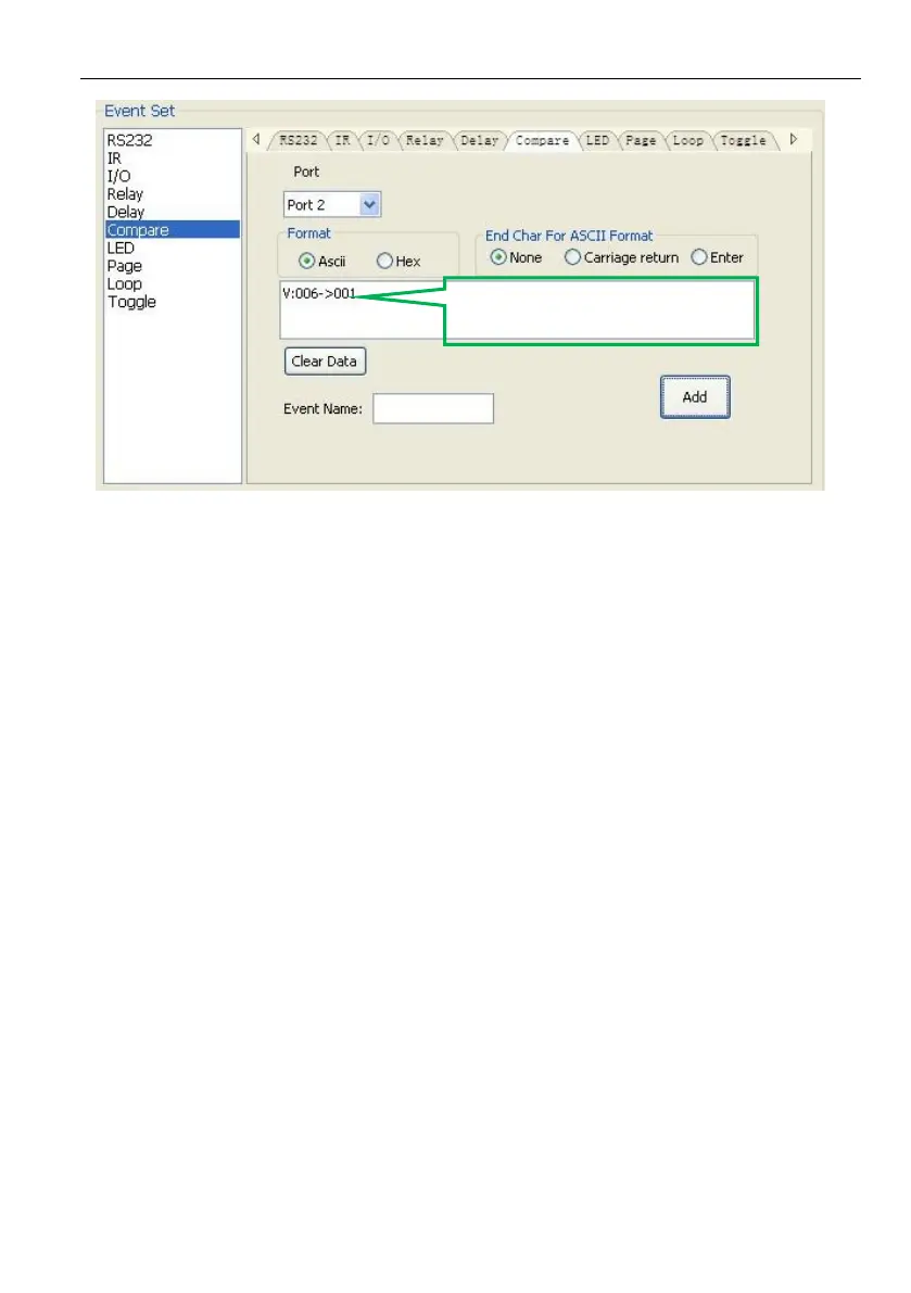 event cannot be added. And port 1 cannot be used for compare, for there is no a