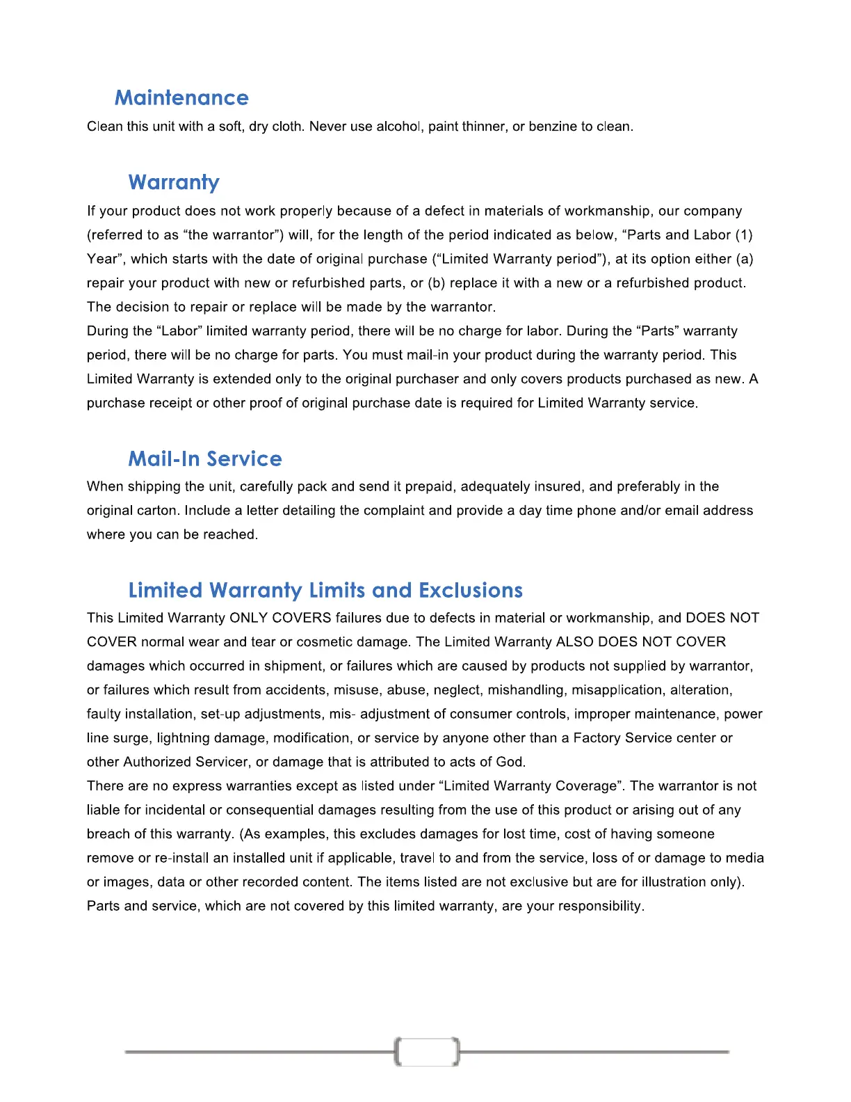 J-Tech Digital JTECH-WEX4K-50 - Maintenance; Warranty; Mail-In Services; Limited Warranty Limits and Exclusions