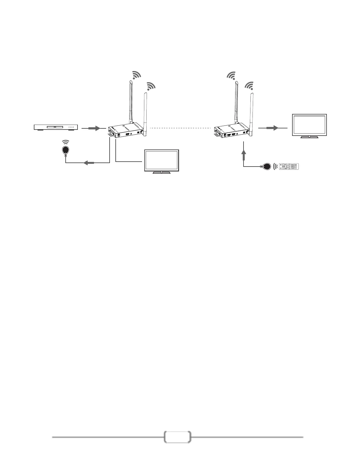 1) Connect the source device to the HDMI IN port of the transmitter with an HDMI cable, and connect
