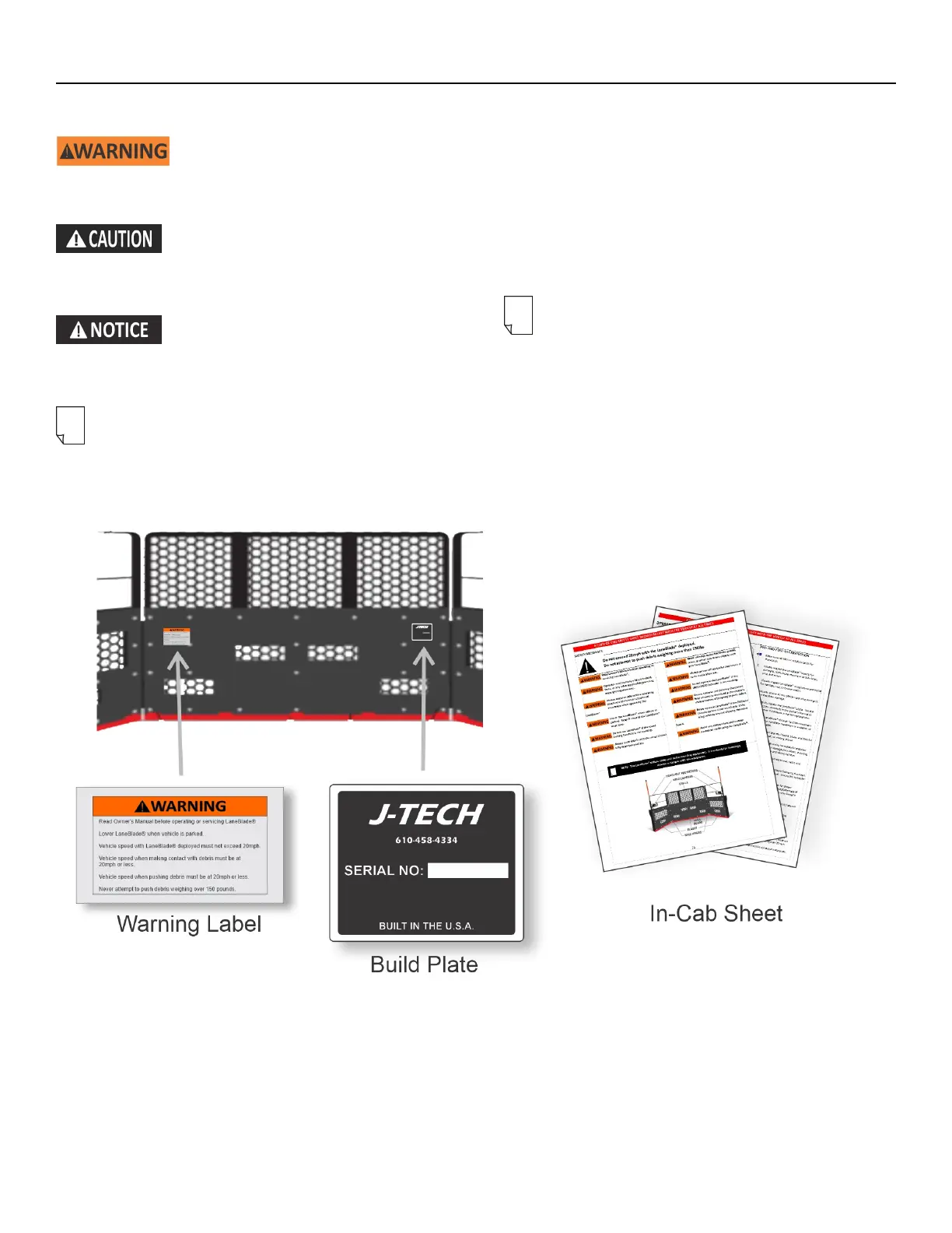 LABELS AND IN-CAB SAFETY SHEET