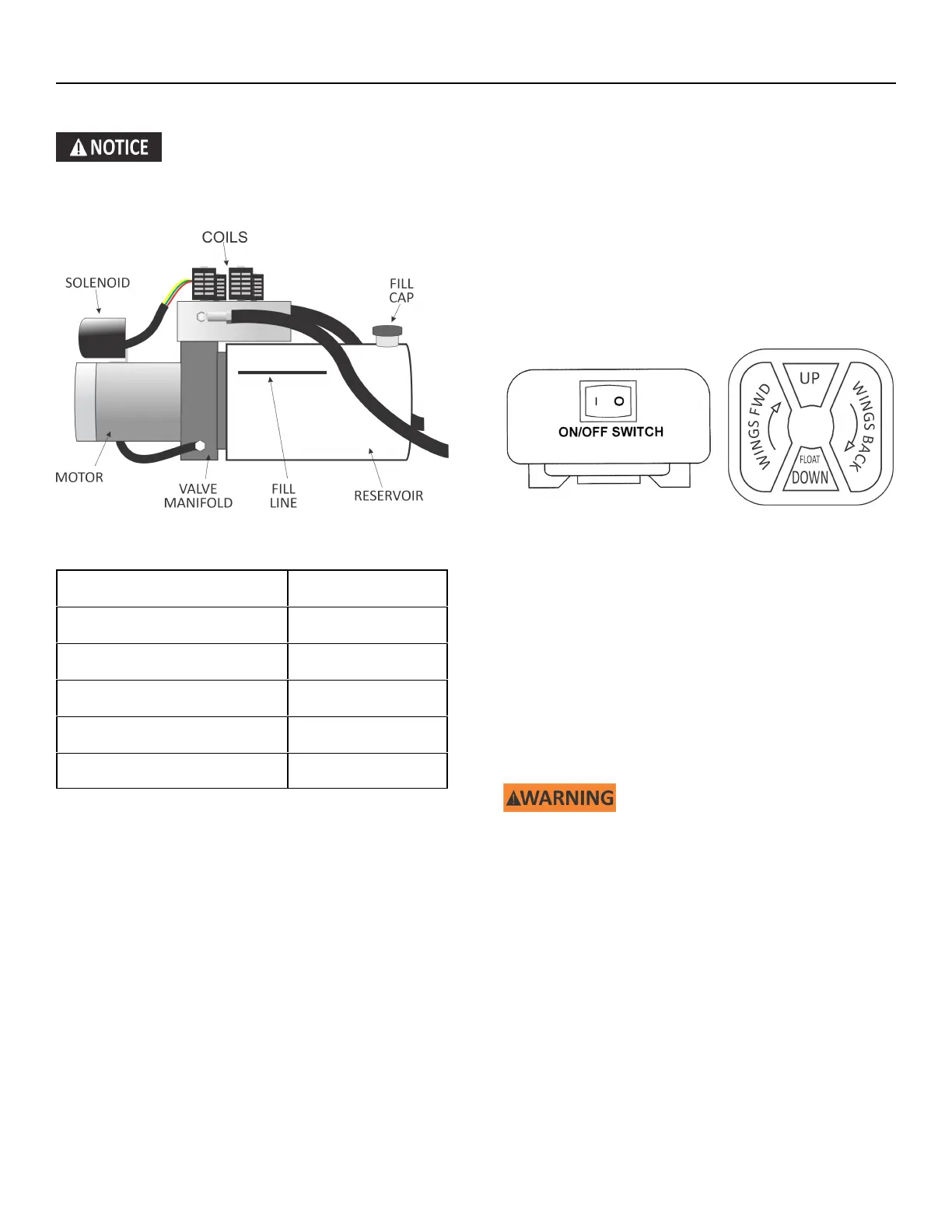 fluid will flow back to the reservoir and the wings