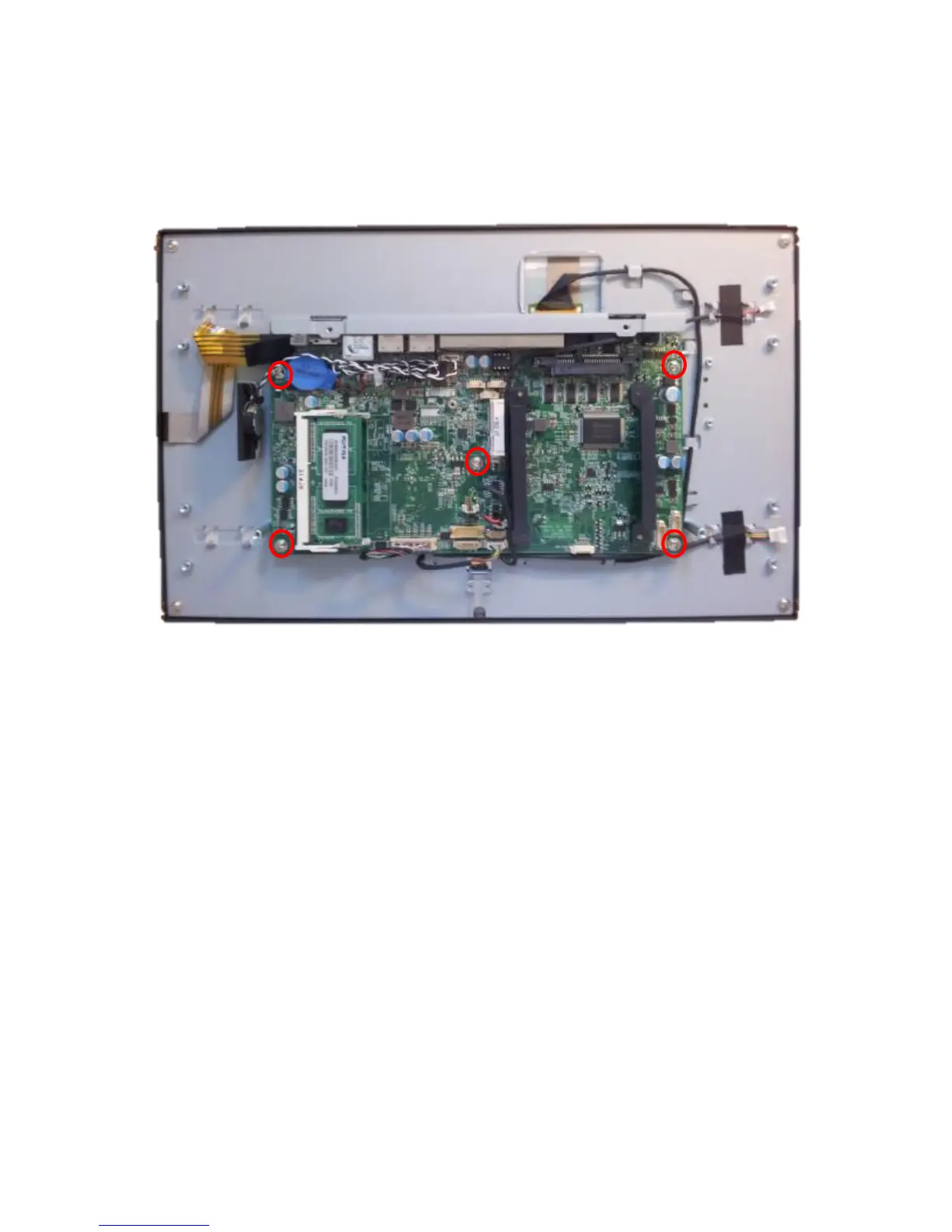 board, then removing the five screws, as shown. The board will need to be moved gently from