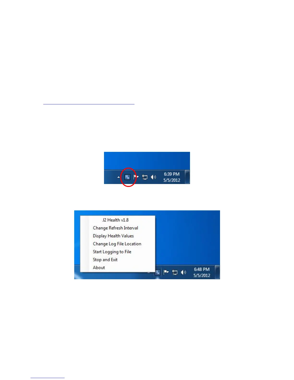 The J2 health icon will appear in the task bar tray: