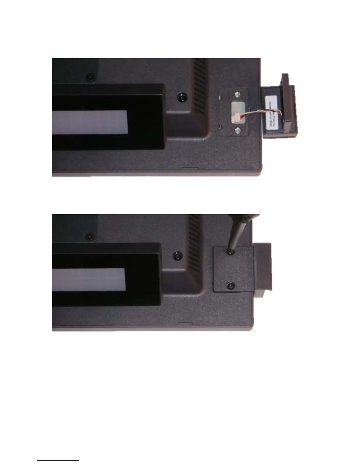 Once the cable is attached, the MSR may be screwed onto the unit using the 2 screws