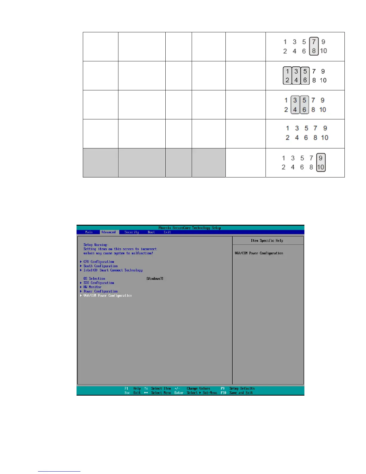 3. Select VGA/COM Power Configuration Ports and press <Enter> to go to