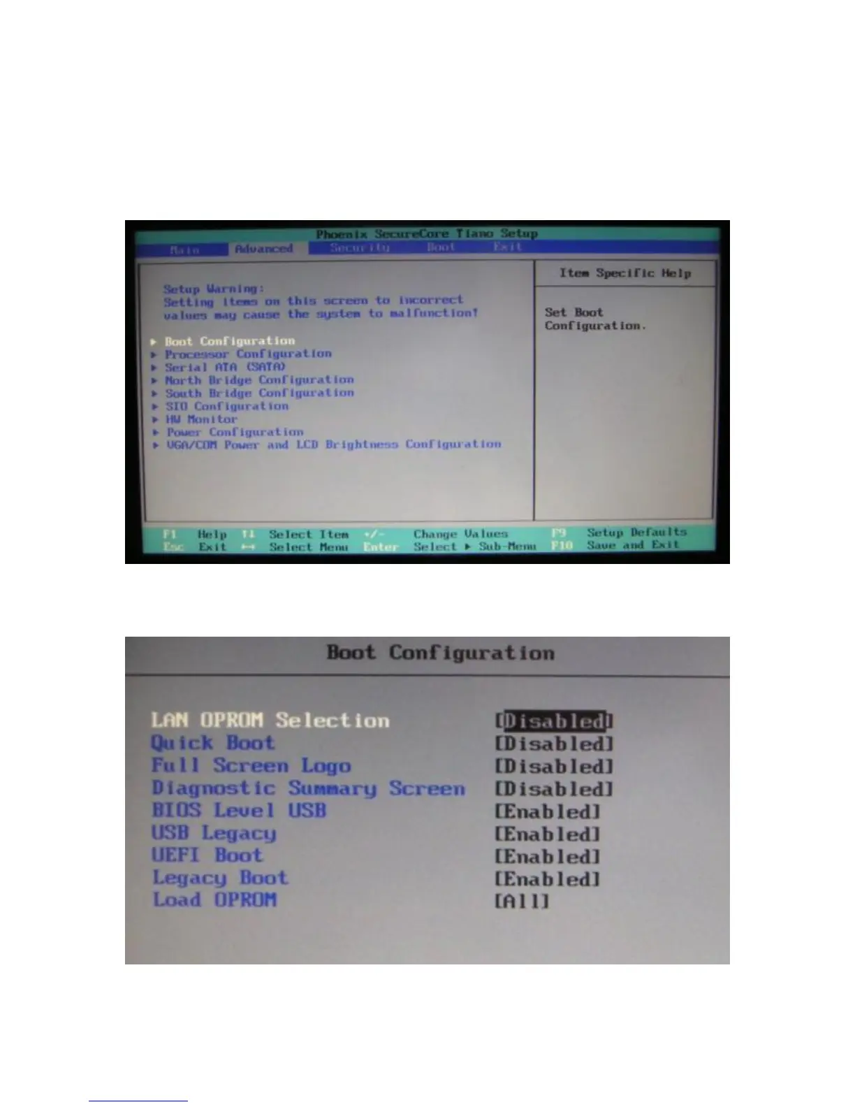 The Advance Screen allows for a number of BIOS options to be accessed. Please use care