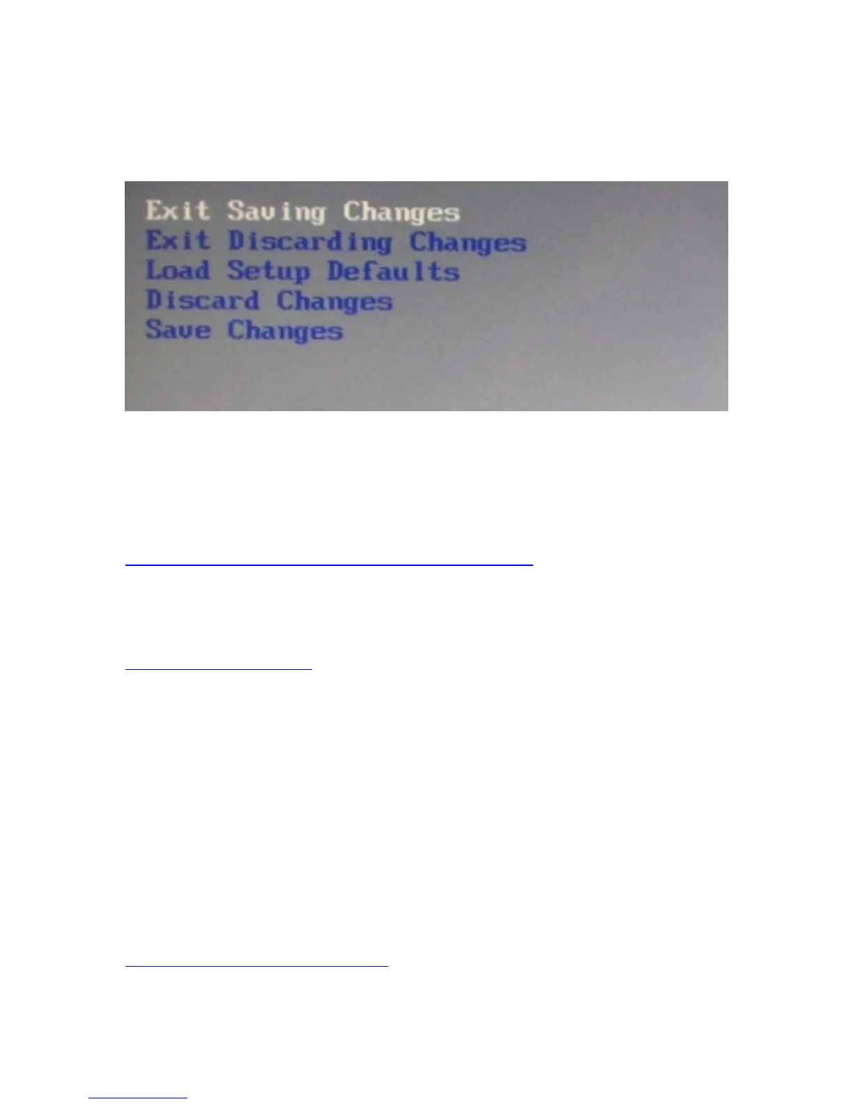 The exit screen allows for the saving, discarding or loading of the default BIOS settings.