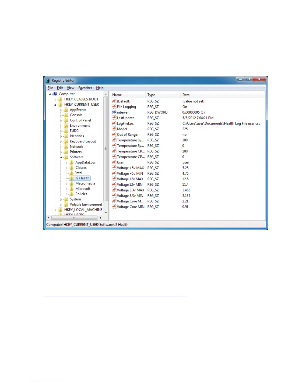 The J2 Health program creates registry entries for the different health values. Dynamic