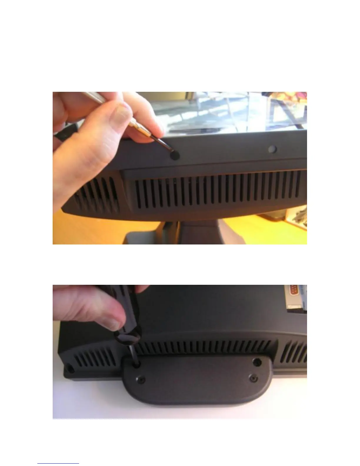 Then remove the MSR cover plate on the right back side of the unit by removing the two