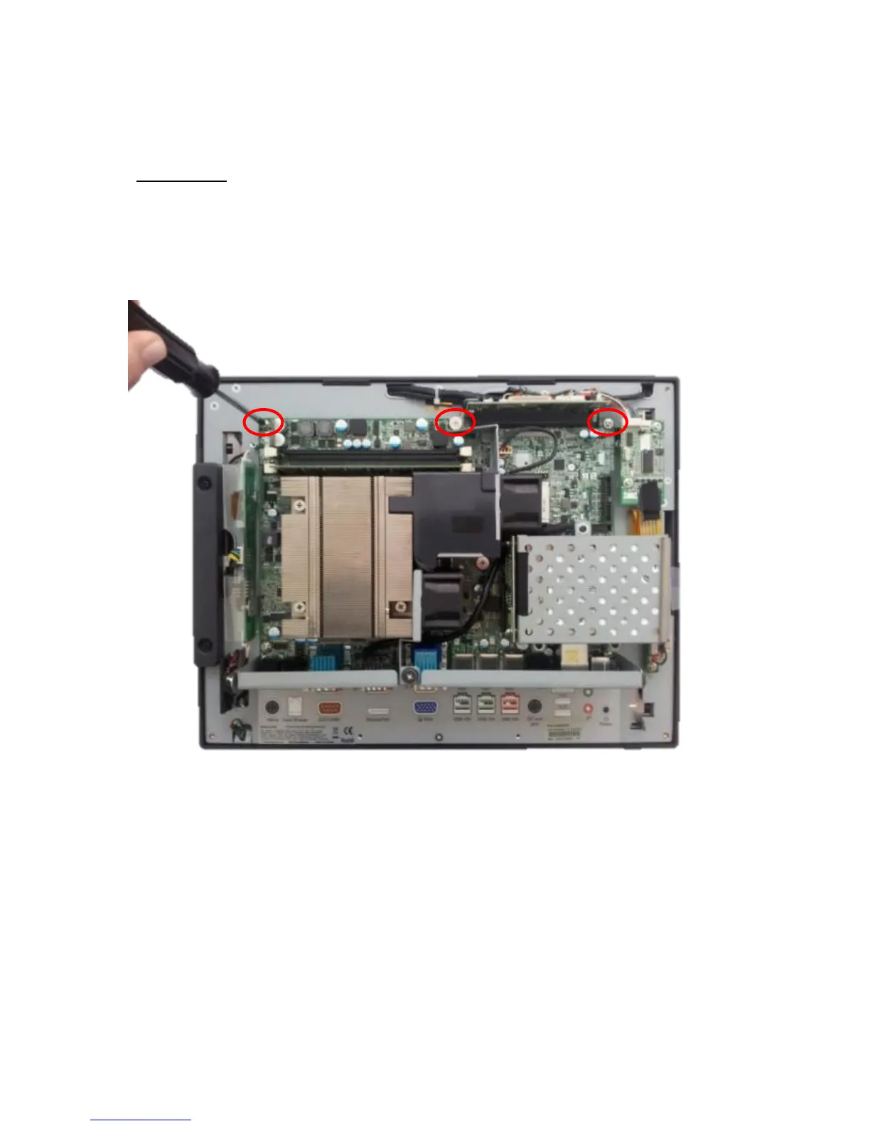First remove the back cover. There are 3 screws that hold the system board in place that