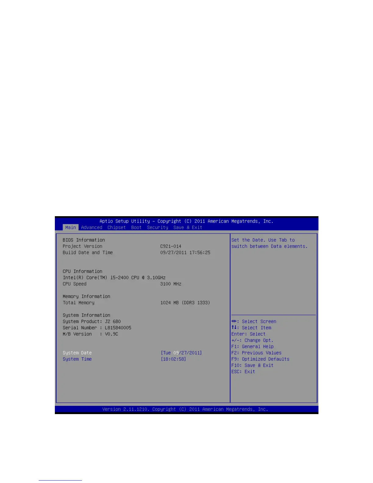 can also be set through the OS. This screen also displays the BIOS version (project),