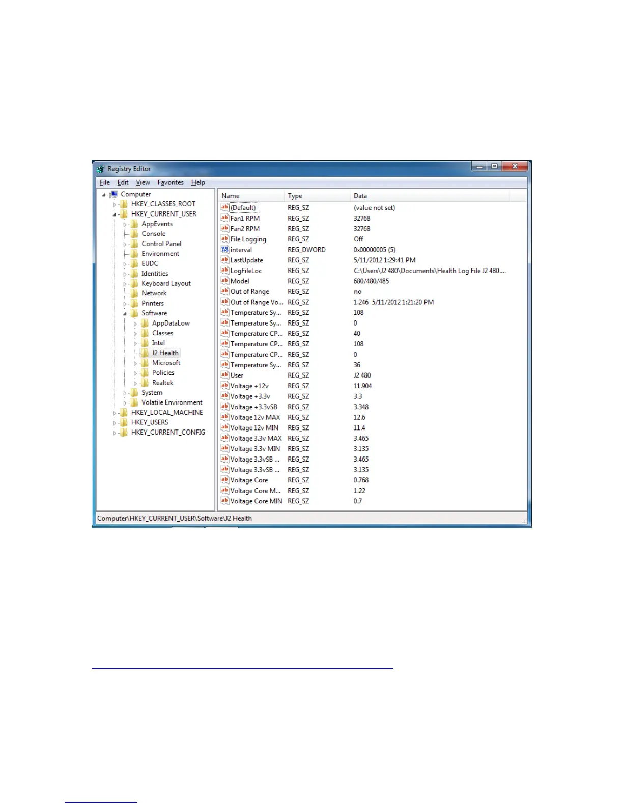 The J2 Health program creates registry entries for the different health values. Dynamic