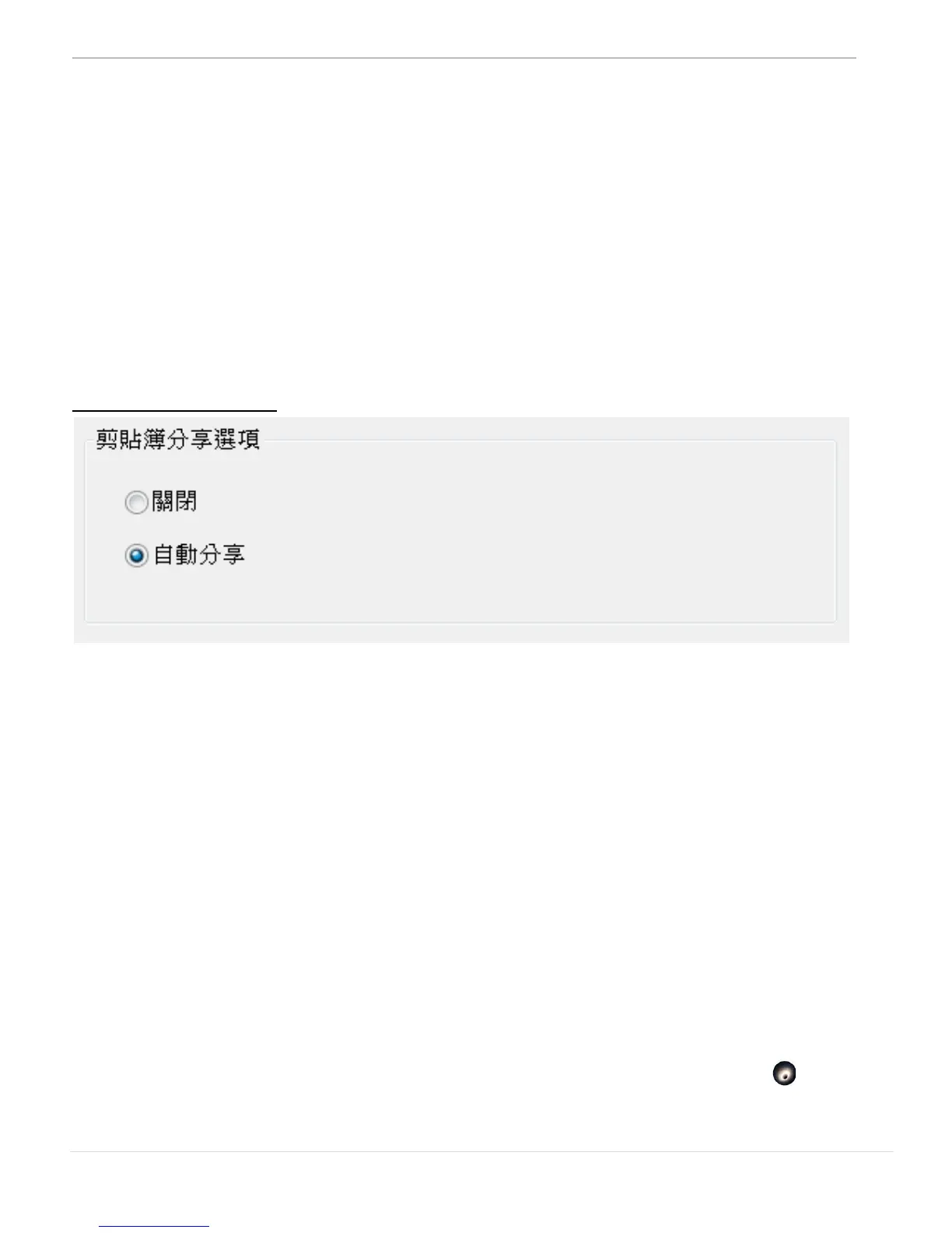 此選項提供您關閉或自動分享剪貼簿功能。使用單一的鍵盤滑