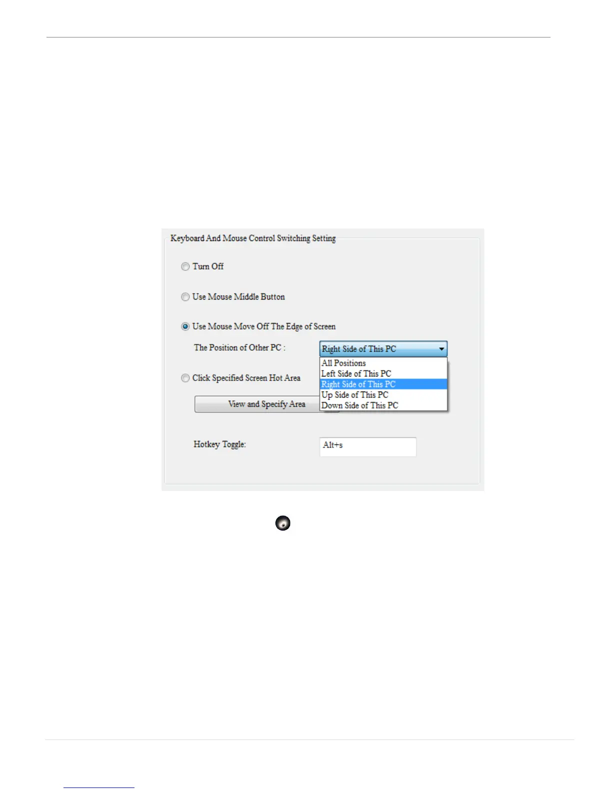 ホット エリア” をクリックすることで、コンピューター間のキーボードとマ
