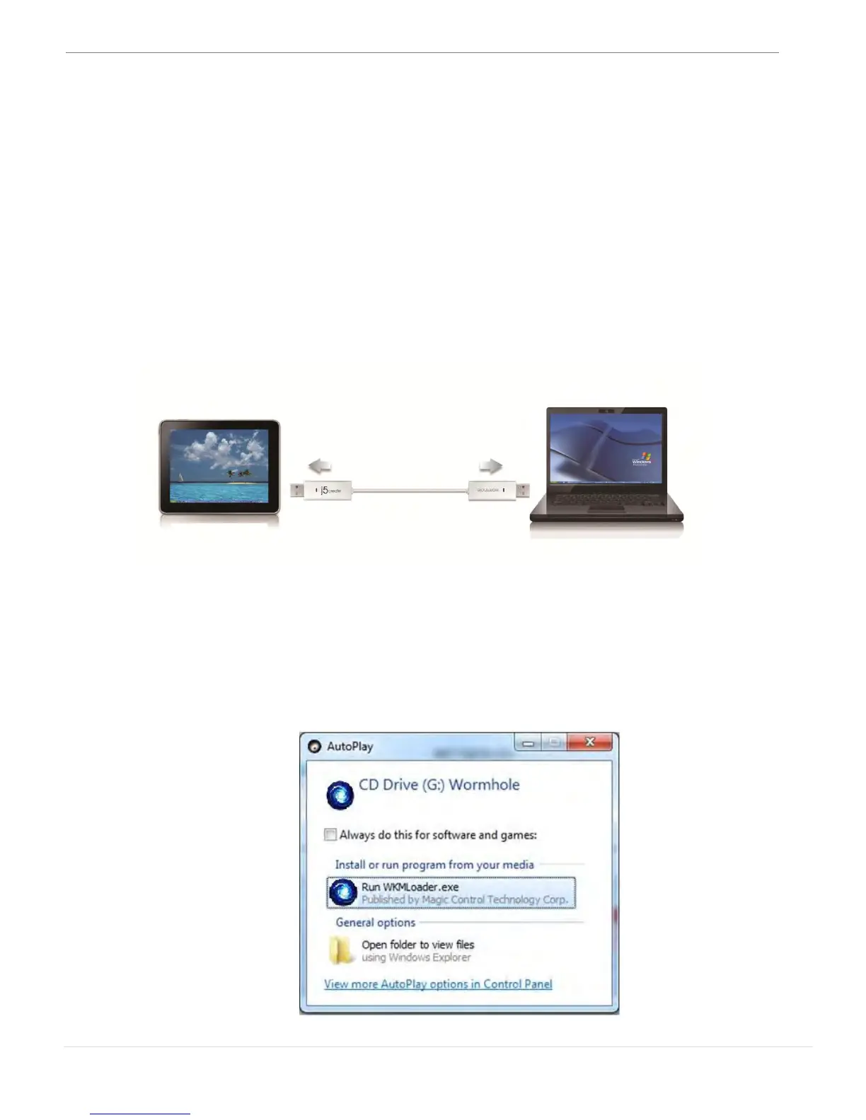 1. 2 台のコンピューターのいずれかの標準 USB ポートに Wormhole