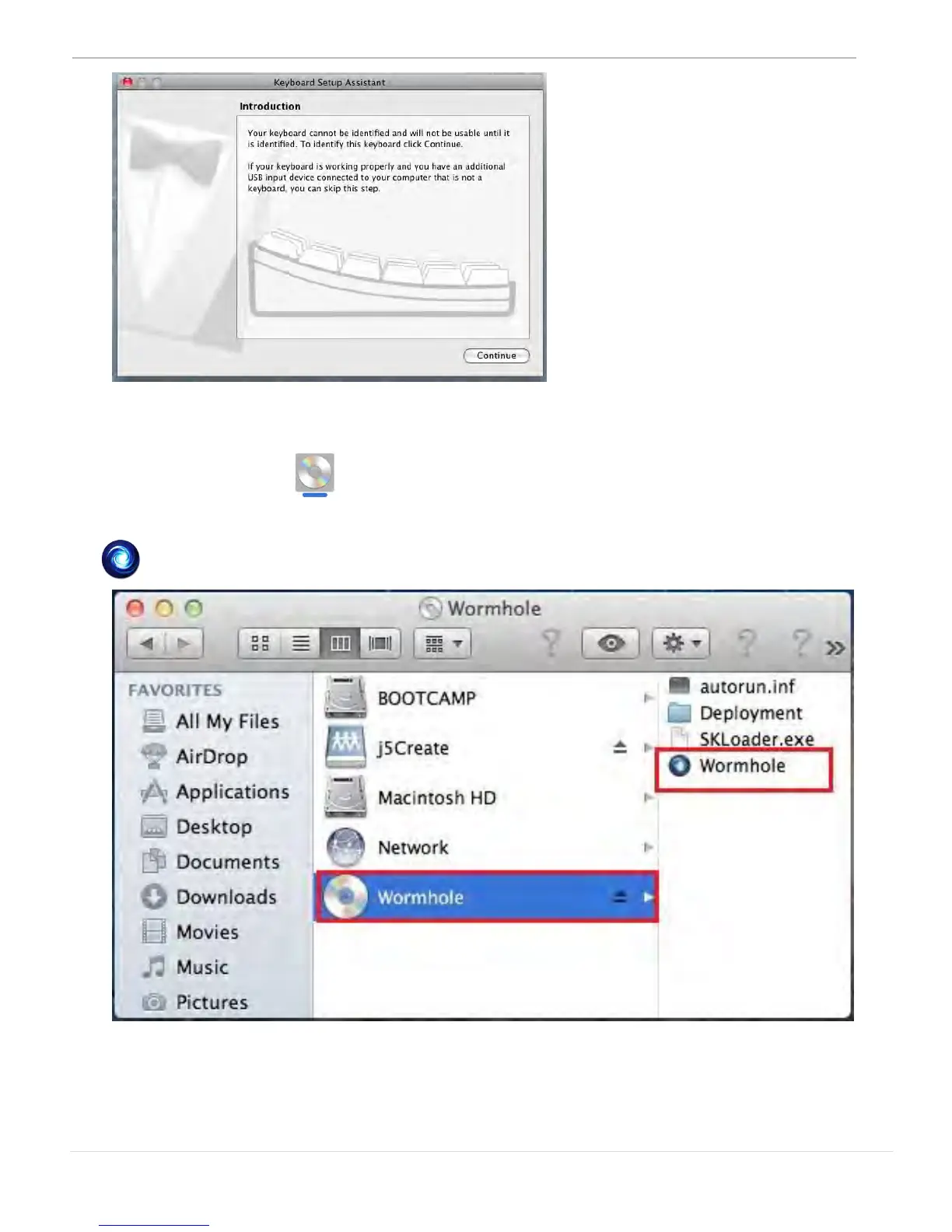 “Macintosh HD” auftauchen. Dann Doppelklick auf das “Wormhole”
