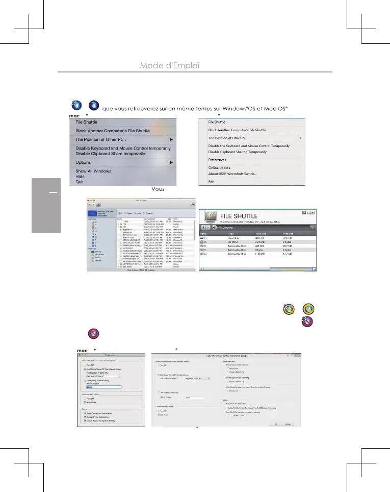 Désactiver temporairement/activer la fonction de partage clavier/souris et/ou