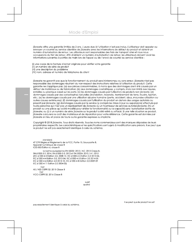 dommages spéciaux, indirects, accessoires, ou autres. Aucune partie de ce document ne peut être reproduite ou transmise