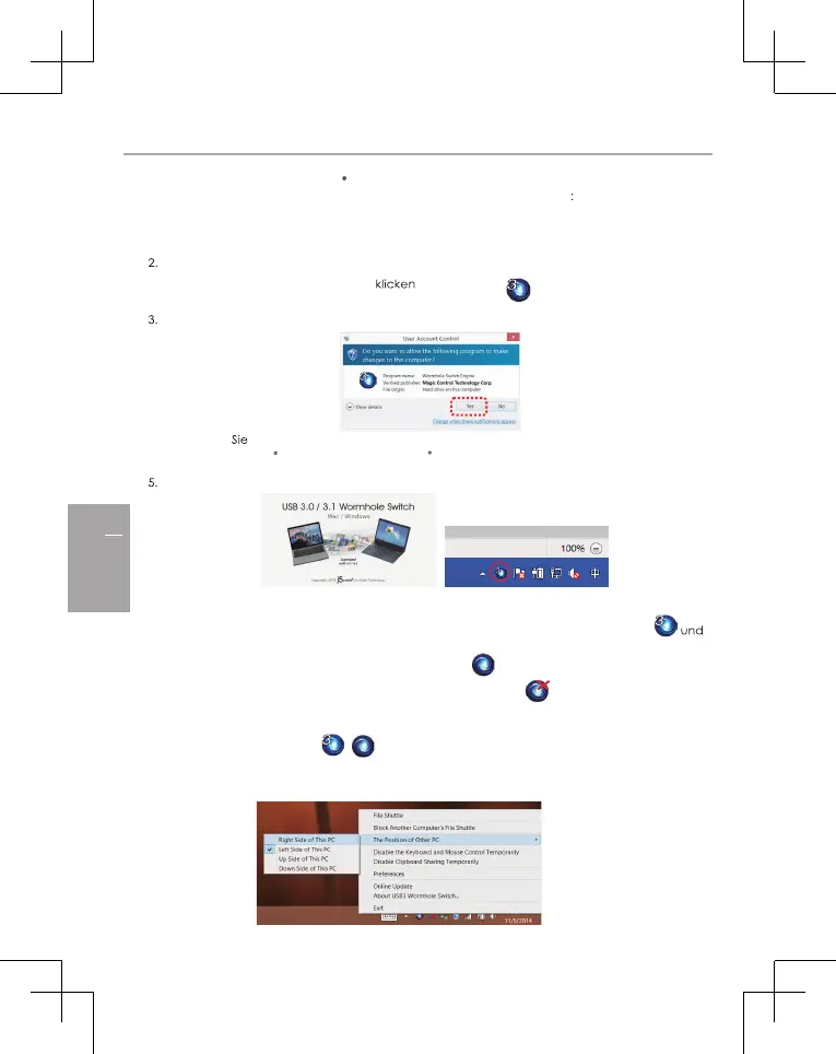 Das Gerät startet automatisch die Software des Wormhole Switch auf beiden Computern.