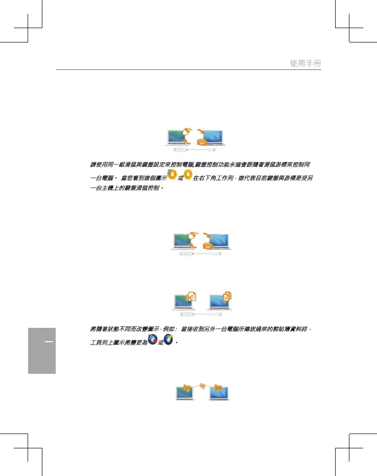 一台電腦。 當您看到這個圖示 或 在右下角工作列,這代表目前鍵盤與游標是受另