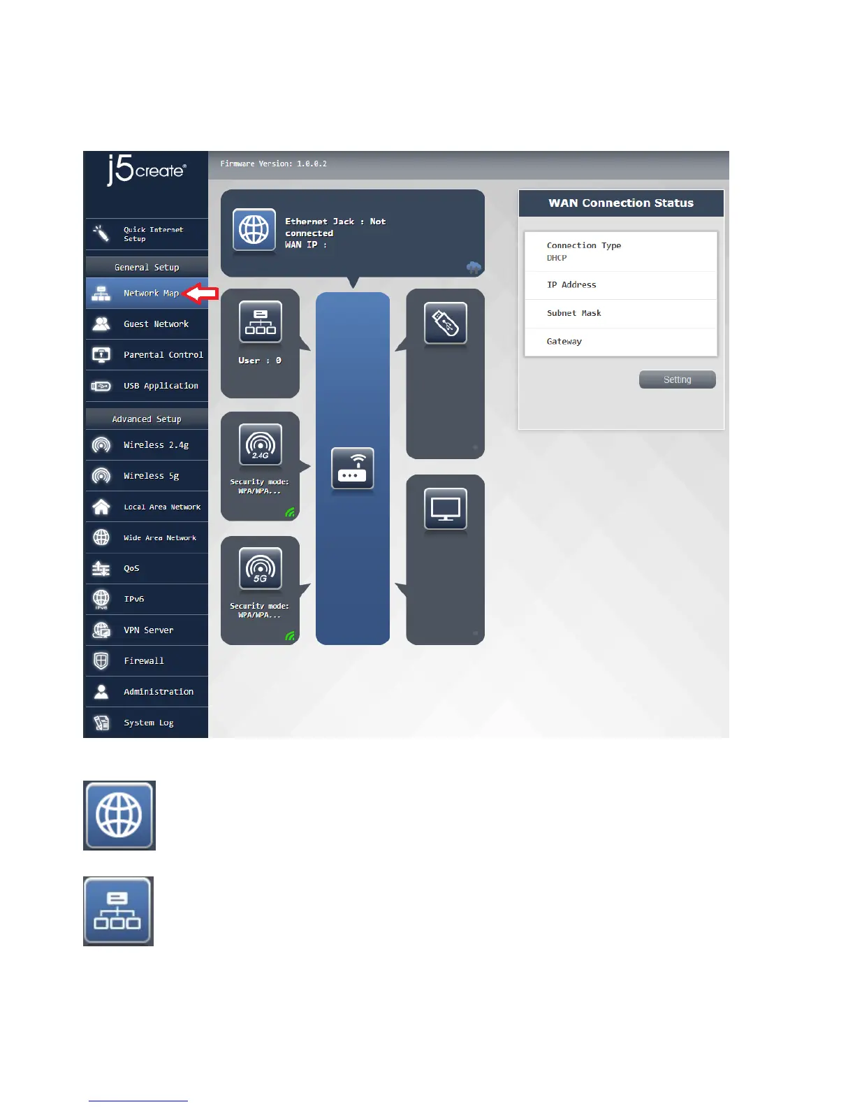 the basic setting is enter the main menu of the router after completed the "Network Map" to confirm the